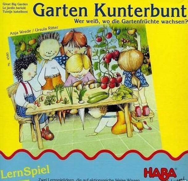 Content: 16 wooden tiles, 30 carrots Two game ideas tell us how home fruit and vegetables look like and how it is called. Game 1: Garten Kunterbunt: He who knows where the garden fruit grow and he who can react very fast, collects the most carrots and wins the game. Game 2: Mein Bupfel ist: He who guesses which fruit is chosen by another child will get a...