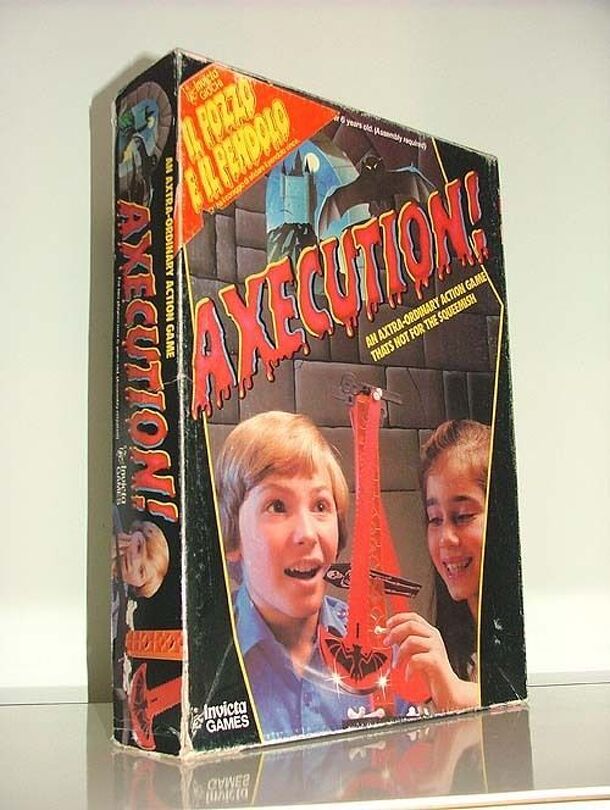 The game board consists of a pendulum hanging from a kind of tower that stands in coffin. Through the tower, bones have been stuck. The pendulum is set in motion, then the players pull out the bones as fast as they can without being interrupted by the pendulum. When the last bone is removed, the coffin lid falls down to close the coffin and the game ends....