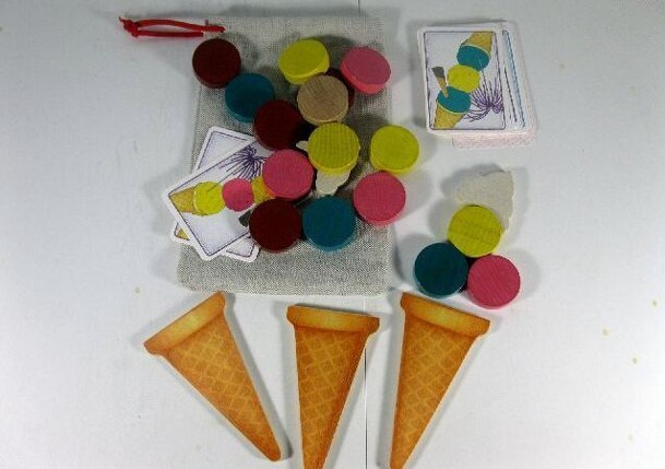 Content: 3 ice cream cones, 3 whipped cream, 36 wooden ice cream balls, 1 bag, 10 cards with 2 ice cream balls each, 24 cards with 3 ice cream balls each Summer or wintertime ice cream is always fun. In this game the combination of the different numbers of ice cream balls is important. The player who has the right combination according to his cards wins...