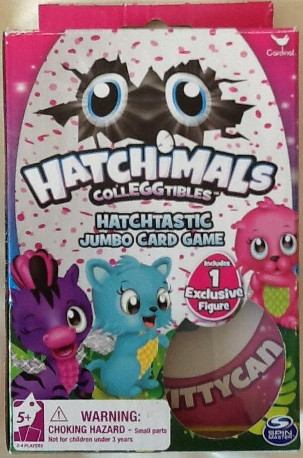 In the Hatchimals Hatchtastic Jumbo Card Game, you're trying to collect the most egg tokens. To do this, you roll the die and draw cards until one player's cards match the egg color and number on the die. But you have to be fast at grabbing the Hatchimals figure when you find a match or no player wins any tokens. When all the tokens have been taken, count...