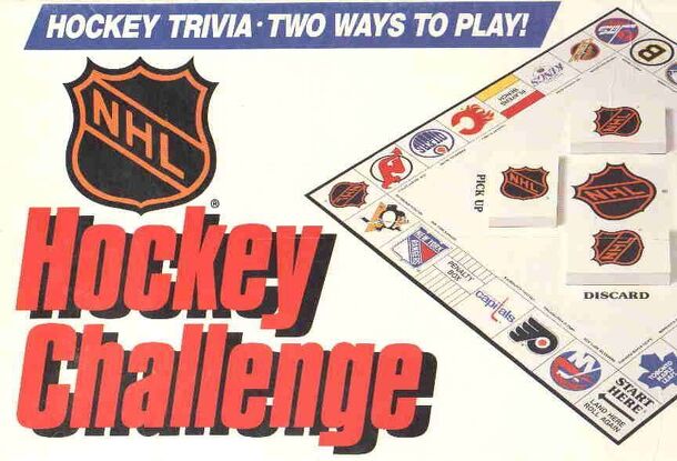 From the box: NHL Hockey Challenge is a game of fun and strategy that takes you through the excitement of the regular season to playoff action while testing your memory of NHL trivia. There are over 1000 questions designed to match any player level. Just choose your game level and match wits with friends and family. Roll the dice, land on a team and you...