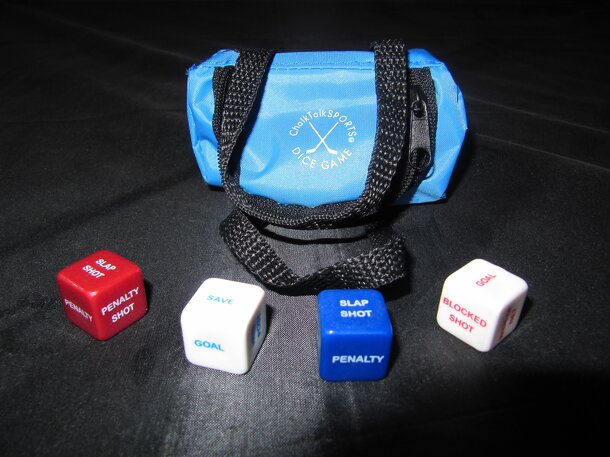 Hockey-Dice Challenge is a unique and fast paced game. It's an exciting "head to head" match that leaves everything to chance - the luck of the dice! Here's how to play: The home team controls red and blue dice and gets first roll. The visiting team controls black and yellow dice. The red and black are offensive dice and the blue and yellow are defensive....