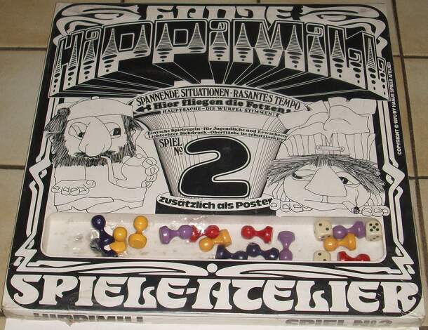 The game consists of 48 cards with 8 different, but similar faces. One is in the middle of the table. Players then take turns to flip open a card from their personal stack. The first player to discover two of the same faces calls "Hipp Hipp" and puts the two cards in front of him/her. If a player discovers three of the same (two in front of another player...