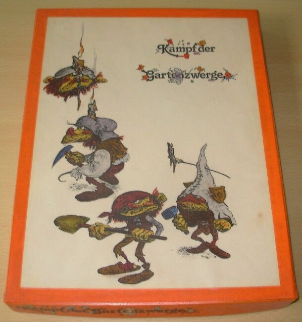 This game was invented 1977 as "Organisms" by Sid Sackson. It was published in the Swiss newspaper "Tagesanzeiger" on October, 13th. 1982 as "Kampf der Gartenzwerge" and later in Spielbox 3/87 as "Krawall im Paradies". The game is played on a 9x11 board. Both players have 21 tokens divided among 3 groups (6,7 and 8 pieces per group). Each group has 1...