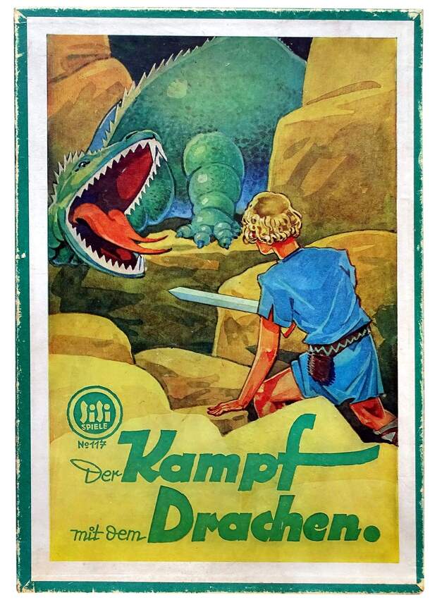 Objective: As a hero - collect as much gold as possible; as dragon - catch all heros; game ends after all gold is collected or all heros are caught/out of the game. - acting by turns - The dragon is placed in the centre of the board, each hero with two pieces of gold on his starting position; remaining gold (4 pieces) are placed at the far end of the cave....