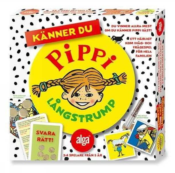 Children´s trivia game about Pippi Longstocking and friends. Each player receives eight tiles with pictures from the books. Players lay them on the table in front of them and memorize the order of the pictures. Then they turn their tiles face-down. Players are then ready to take turns rolling the die and moving on the board. If they land on a red spot, the...