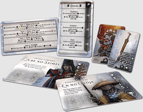 Ordalia Cards represent specific tasks Mages must perform by the end of the game to prevent the Black Rose from gaining additional Power Points. Each Ordalia Card has two different tasks; each completed task will grant Power Points to both the Mage and the Black Rose, but if the Mage fails to perform any of his/her tasks, he/she will lose against the Black...
