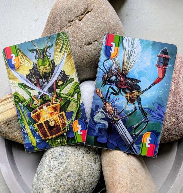 These two cards act as jokers with values of 2 and 3 (i.e. one wild 2, and one wild 3). They can be placed on any already played attack of any suit to continue that attack. A joker card can also be played as the first card to attack a flower, with the colour of the attack being determined by the suit of next card the player places upon the joker.