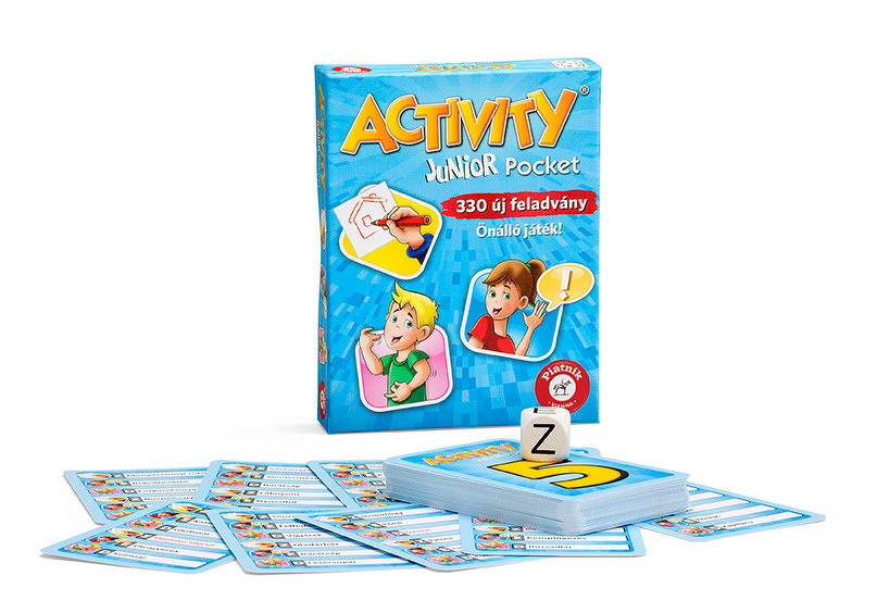 Az Activity Junior Pocket egy kiváló társasjáték, 3 - 12 játékos részére, az átlagos játékidő rövidebb, csak 45 perc. A társast, 8 éves kortól ajánljuk kipróbálni. A játékmenet erősen épít a színészkedés és a valósidejű mechanizmusokra.