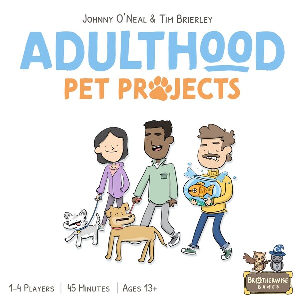 Az Adulthood: Pet Projects egy könnyen tanulható kiegészítő az Adulthood társasjátékhoz, 1 - 4 játékos részére, az átlagos játékidő rövidebb, csak 45 perc. A társast felnőtteknek ajánljuk! A játékmenet erősen épít a pakli tervezés, a market, a kártya húzás, a track movement és a munkás-elhelyezés mechanizmusokra.