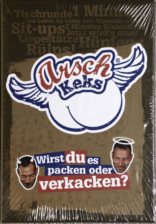 Party Game. 85 challenge and special cards, 1 die, 1 Arschkeks (Ass Cookie). The player who has the "Arschkeks" is the active player. He draws a card and tries to do the...