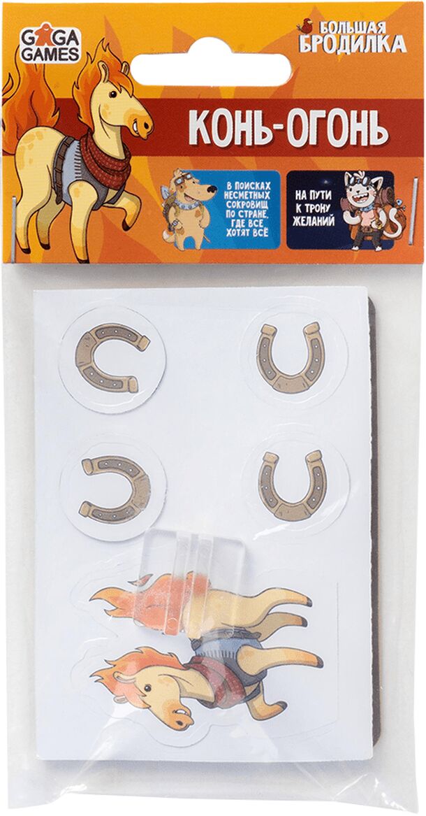 Большая бродилка: Конь-Огонь ("Crazy Adventures: Flare-Mare") is ready to join the race for treasure! You can use this character in games of both the classic Crazy Adventures and the Crazy Adventures: On the Way to the Desire Throne game. This mini-expansion includes a colorful miniature figure, a character card with a special ability, and resource tokens...