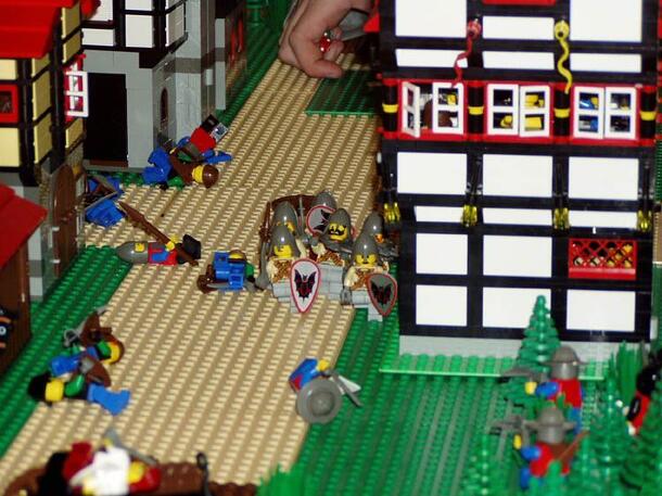 Take your Lego men, drop them onto the Warhammer 40k battlefield and you get Brick Battles.