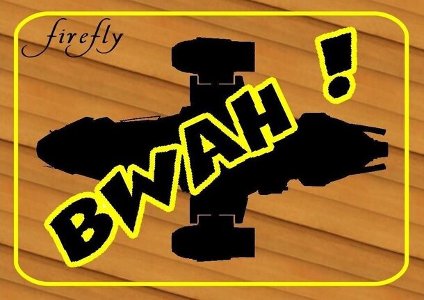 A fan-made re-theme of BANG!, based on Joss Whedon's "Firefly" TV show. Instead of Sheriff, Deputy, Outlaw and Renegade, it's Captain, Crew, Local Color and The Merc. Characters are from the TV show, such as Wash, Mal, Book, Zoe, River, etc. Weapons and everything else is also based on the show; i.e. Vera (Weapon) and the Mule (Vehicle instead of Mount). And instead of Beer, you get Mudder's Milk.