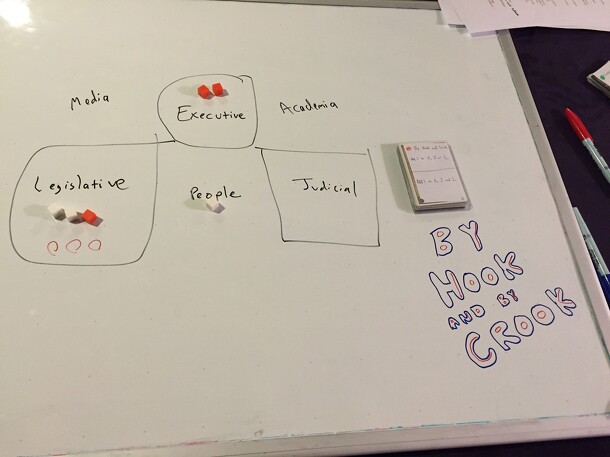 The year is 2035, players are megacorporations seeking to influence the world government for personal gain. 2 player area control game with a unique card flipping mechanic....