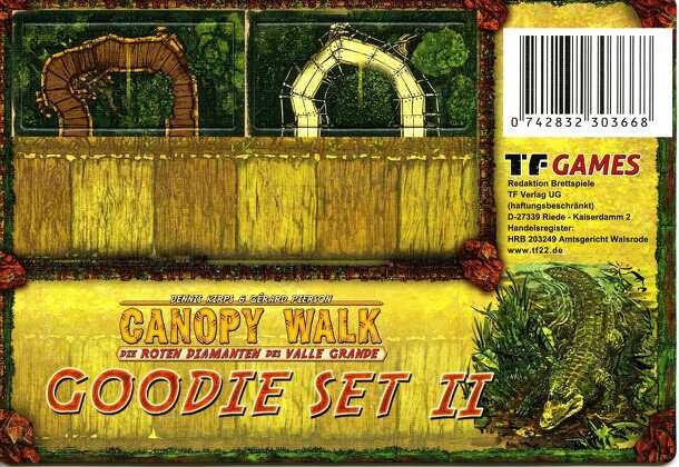 A Canopy Walk: Goodie Set II egy nagyon könnyen tanulható kiegészítő a Canopy Walk társasjátékhoz, 2 játékos részére, az átlagos játékidő rövid, csak 30 perc. A társast, a könnyebb tanulhatósága ellenére, csak 14 éves kortól ajánljuk kipróbálni. A játékmenet erősen épít a lapka-elhelyezés mechanizmusra.