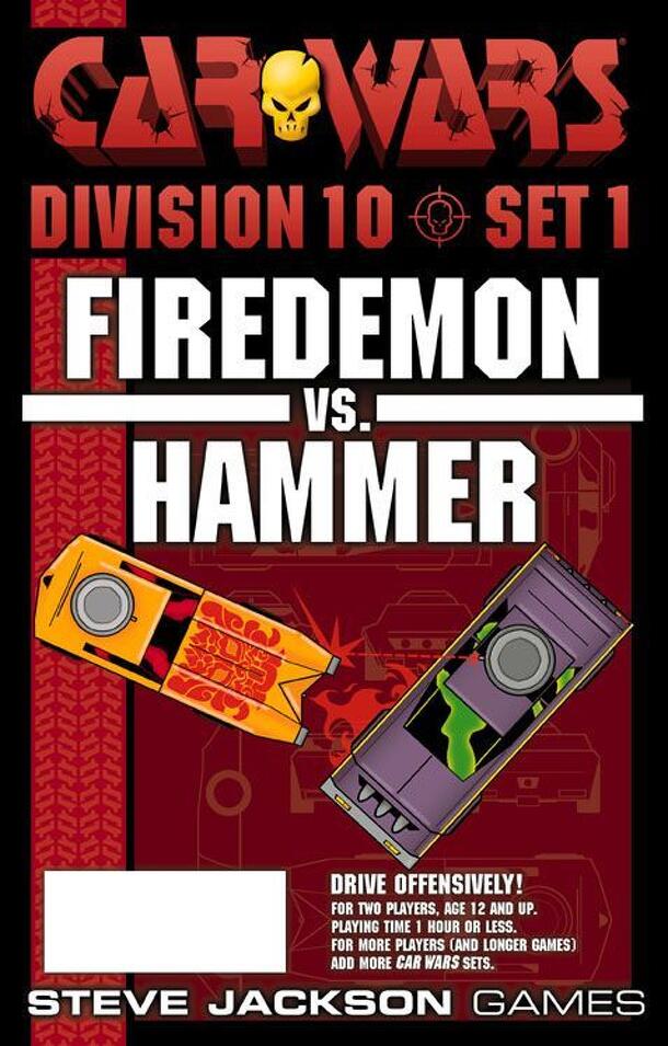 Car Wars Fifth Edition Starter Set, Division 10 - Set 1 is a complete starter set for Car Wars: the basic rules, counters and components, and two cars. The cars are Firedemon vs. Hammer (with each have modifications). Division 10 duels allow a total of $10,000 for a vehicle. The Car Wars Turning Key included in the set is especially helpful. Part of the...
