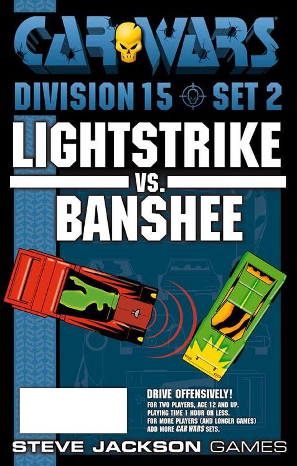 Car Wars Fifth Edition Starter Set, Division 15 - Set 2 is a complete starter set for Car Wars: the basic rules, counters and components, and two cars. The cars are Lightstrike vs. Banshee (with each have modifications). Division 15 duels allow a total of $15,000 for a vehicle. The Car Wars Turning Key included in the set is especially helpful. Part of the...