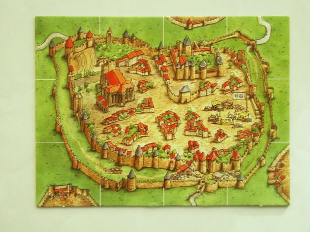 This beautiful tableau shows the town Carcassonne and offers a lot of possibilities to put on your tiles at the beginning of your game.