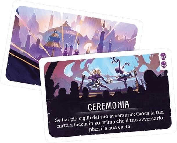 A Duel for Cardia: Ceremonia Promo Card egy nagyon könnyen tanulható kiegészítő a Cardia társasjátékhoz, 2 játékos részére, az átlagos játékidő rövid, csak 15 perc. A társast, a könnyebb tanulhatósága ellenére, csak 9 éves kortól ajánljuk kipróbálni. A játékmenet erősen épít a pakli tervezés mechanizmusra.