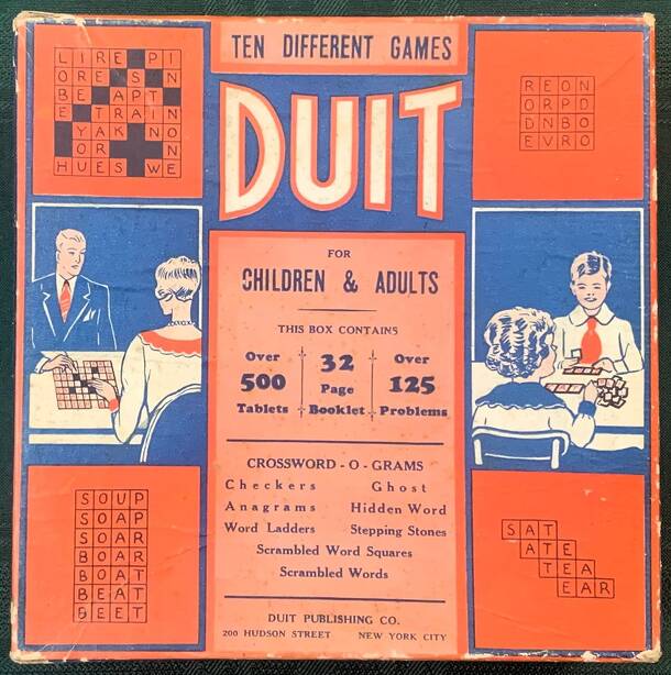The Duit set has over 500 thick cardboard tiles, each being either a letter or a black square, and a booklet for 10 different games, most of which are actually puzzles: -...
