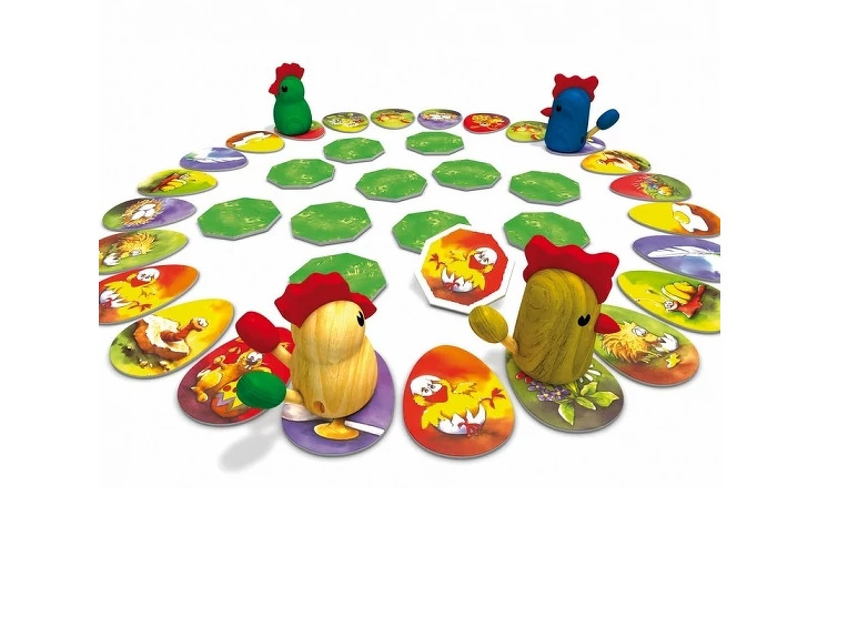 Nagyon egyszerü játék kisebb gyerekeknek. Szerintem teljesen jó kis mechanikája van, kicsiknek tényleg jó. Mondjuk, ha a gyerkőcnek jó a memóriája, akkor elég unalmassá válhat, főleg annak, aki várakozik arra, hogy a másik mikor fog hibázni! Ezért lenne jó, ha több kártya közül kell választani, nem csak 12 közül, vagy esetleg a kártyákat lehetne cserélgetni valaminek a hatására, akkor ezzel lehetne egy kicsit "nehezíteni" a játékosok számára a játékot. A tyúkicák teljesen jók, és tetszik, hogy el lehet lopikálni másnak a tollait!