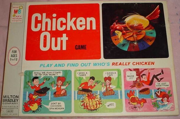 This delightful children's game cosists of six contests, each requiring a player to take a chance and advance or "chicken out."