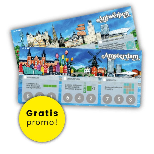 Expand the basic Cities game with a new achievement board. That includes the main attractions of the cities of Amsterdam and Antwerp for even more variety.