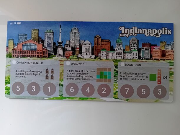 Expand the basic Cities game with a new achievement board. That includes the main attractions of the cities of Essen and Indianapolis for even more variety.