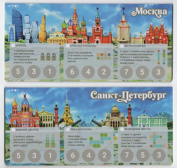 Expand the basic Cities game with a new achievement board. That includes the main attractions of the cities of Moscow and Saint Petersburg for even more variety.