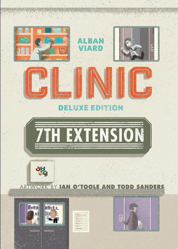 Clinic: Deluxe Edition – 3rd Extension adds 12 expansions and 3 related variants to Clinic: Deluxe Edition, including the following: Cigarettes Helicopters Fire Trucks Wheelchairs Public Toilets Temp Agency Triage Ghosts Therapy Dogs Gift Shop Air Conditioners Urban Design 2.0 Variant 2: Easing the Stress Variant 2a: Tough Doctors Variant 2b: Clever...