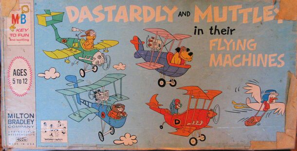 A Dastardly & Muttley in their Flying Machines egy remek társasjáték, 2 - 4 játékos részére. A társast, 8 éves kortól ajánljuk kipróbálni. A játékmenet erősen épít a kockadobás mechanizmusra.