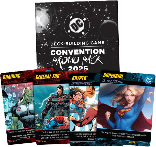 A DC Deck-Building Game: Convention Promo Pack 2025 egy könnyen tanulható kiegészítő a DC Comics Deck-Building Game társasjátékhoz, 2 - 4 játékos részére, az átlagos játékidő 1 - 1.5 óra. A társast, a könnyebb tanulhatósága ellenére, csak 15 éves kortól ajánljuk kipróbálni. A játékmenet erősen épít a váltakozó képességek, a kártya húzás és a pakli építés...