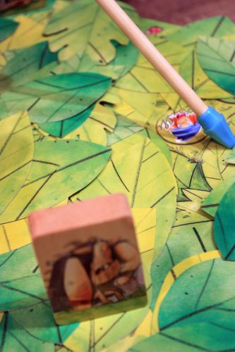 In Die verzauberten Rumpelriesen, the magician players want to find imps hiding in the leaves that cover the forest floor around them – but they must search carefully to find these imps so that they don't wake the sleeping giants guarding the land. Oh, and they'll need to search quickly, too, or else the giants will wake from the sleeping spell cast on them and run the searchers out of the forest. Who can combine speed, control and a good memory to find the imps where they hide?