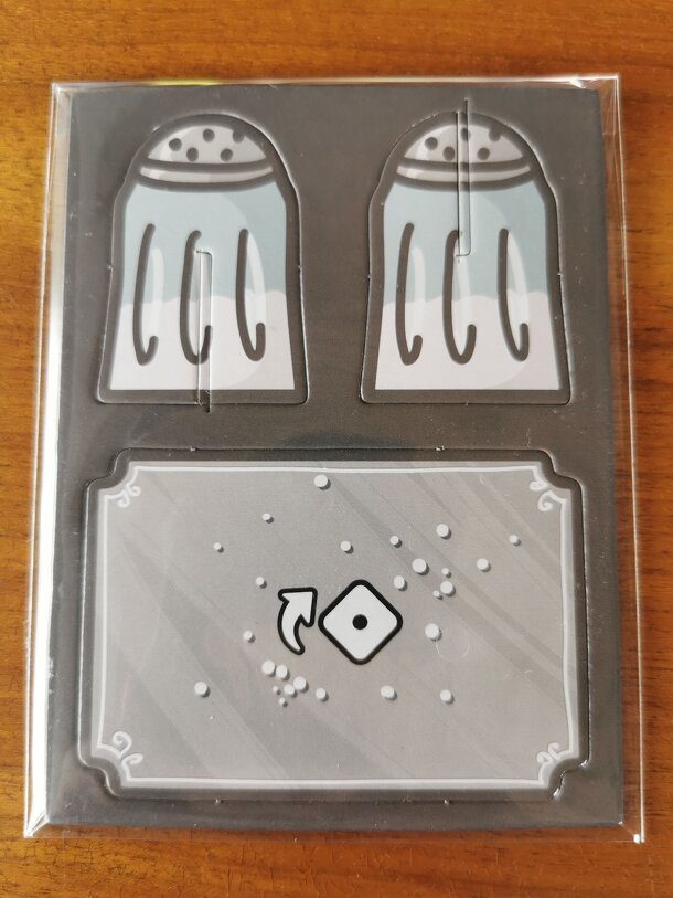 This mini-expansion for Dinner Party adds a little Salt standee and a platter (with rules on its back). The base game is required to play.