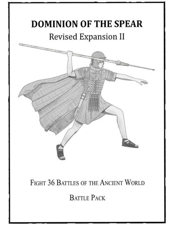 This is the second expansion for the Dominion of the Spear solo wargames rules and contains 36 more ancient and medieval historical battles with each having a very brief background, army lists, suggested historical deployment, and very brief description of what happened in the actual battle and the consequences. Needs the revised Dominion of the Spear...