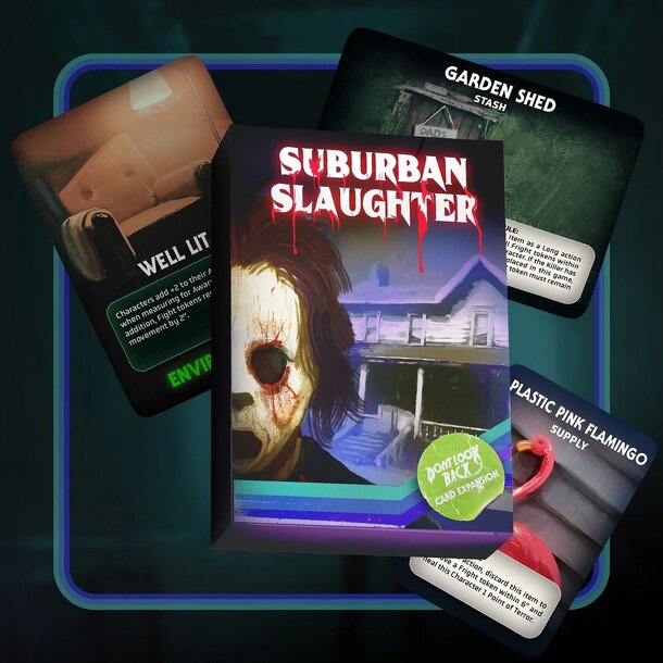 A Don't Look Back: Suburban Slaughter – Card Expansion egy közepesen összetett kiegészítő a Don’t Look Back: The Core Game társasjátékhoz, 1 - 6 játékos részére. A társast, a bonyolultsága miatt, csak 18 éves kortól ajánljuk kipróbálni. Kooperatív jellegű.