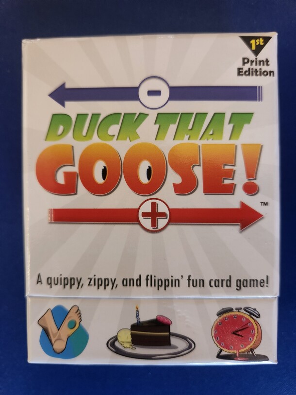 Duck That Goose Invites players to outsmart opponents in a comical quest where fortune flips with the cards. With a deck of sixty-nine whimsically designed cards, players navigate the twists of fate, all while evading a wild good chase. Will you float on cloud 9? Or shoot yourself in the foot? Risk the ire of the table… and you may get thrown under the bus or have your bubble burst. Every round is an unpredictable riot!