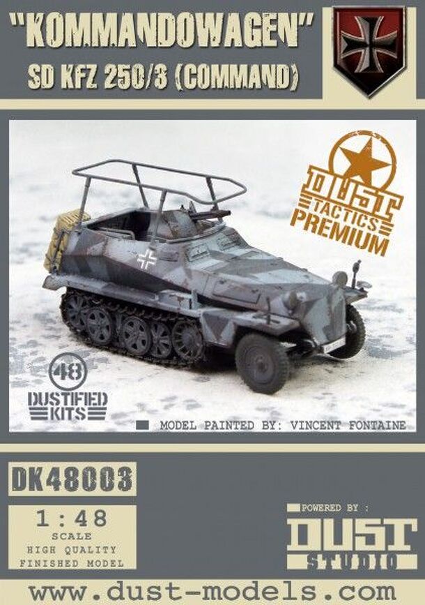 A Dust Tactics: SD KFZ 250/3 – "Kommandowagen" egy közepesen összetett kiegészítő a Dust Tactics társasjátékhoz, 2 játékos részére. A játékmenet erősen épít az akció pontok, a moduláris tábla és a kockadobás mechanizmusokra.