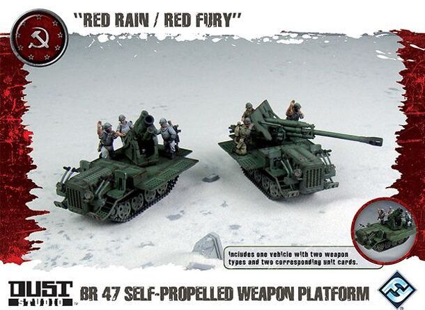 A Dust Tactics: SSU BR-47 Self-Propelled Weapon Platform – "Red Rain / Red Fury" egy közepesen összetett kiegészítő a Dust Tactics társasjátékhoz, 2 - 4 játékos részére. A játékmenet erősen épít az akció pontok, a moduláris tábla és a kockadobás mechanizmusokra.