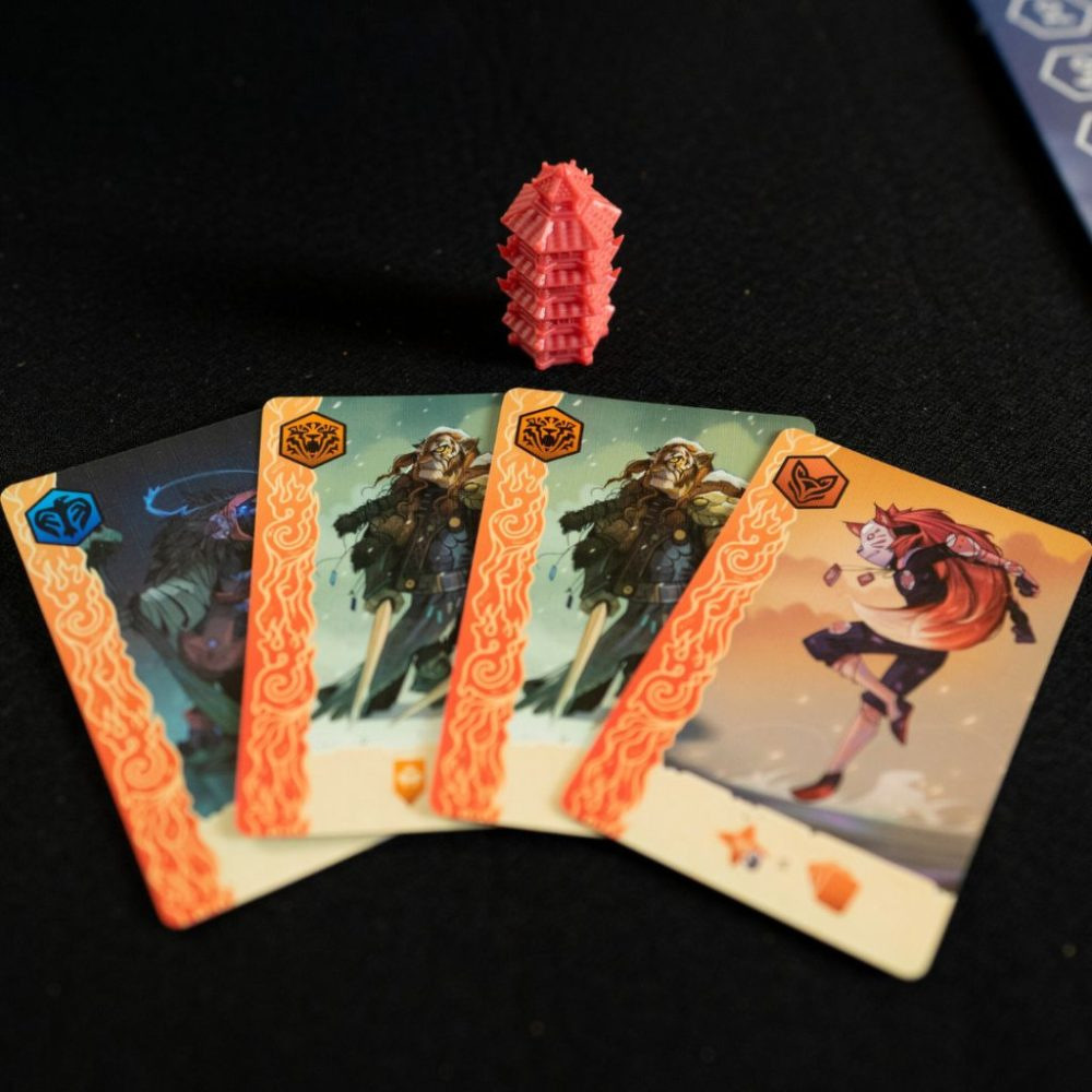 Gyüjtsd a lapokat, hogy minél az adott területeken a lehető legtöbb befolyással legyél jelen. Ami nekem nagyon tetszik a játékban, hogy amikor szettet játszol ki legyen az ugyan azon klán ikonja vagy ugyan olyan színű kártyák, akkor a kezedben lévő összes többi kártya bekerül a közös piacra ahonnan szépen a többiek tudnak szemezni.