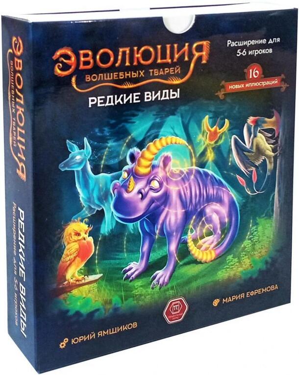 Эволюция волшебных тварей: Редкие виды ("Evolution: Another World – Rare Species") expansion contains additional components for the 5 or 6-player game mode. This module includes 32 Evolution cards with the same traits as in the base game, but different art. They can be introduced into the game in two ways: If you want to increase the variety of...