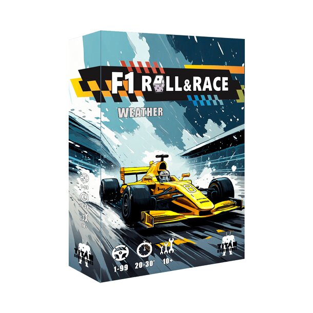 A F1 Roll & Race: The Weather egy könnyen tanulható kiegészítő a F1 Roll & Race társasjátékhoz, 1 - 99 játékos részére, az átlagos játékidő rövid, csak 15 - 30 perc. A társast, a könnyebb tanulhatósága ellenére, csak 10 éves kortól ajánljuk kipróbálni.