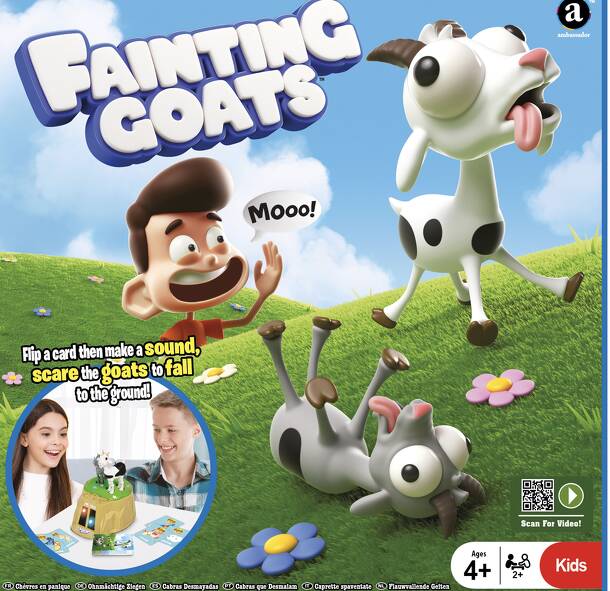 A Fainting Goats egy nagyszerű társasjáték, 2 - 99 játékos részére, az átlagos játékidő rövid, csak 20 perc. A társast, 4 éves kortól ajánljuk kipróbálni.