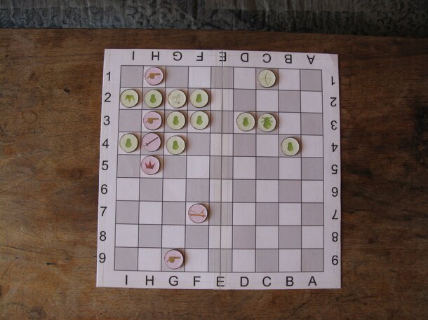 A chess-like board game for two players. Each player chooses a race (humans, dwarfs, elves, undead or orcs) and then his "army", i.e. his set of figures (including exactly one king). Similar to chess, each figure has different movements. Since, other than in chess, the armies are not predefined, there is a setup phase before the game where players place their figures on the board. Then the game is played like chess, with players alternately moving figures according to their possible movements. A player loses when his king is captured.