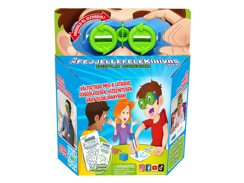 Each round, players take turns performing a challenge card while others watch (and laugh). Successfully completing the task earns points, but failure means passing the turn. The “Double Twist” edition includes two pairs of glasses and new challenge cards, allowing for simultaneous play and head-to-head duels.