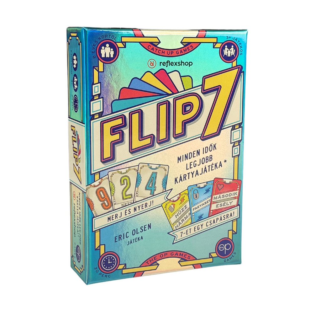 A Flip 7 egy nagyon könnyen tanulható társasjáték, 3 - 18 játékos részére, az átlagos játékidő rövid, csak 20 perc. A társast, a könnyebb tanulhatósága miatt, akár már 8 éves kortól ajánljuk kipróbálni. A játékmenet erősen épít a merj és nyerj, a vedd el, a score-and-reset game és az interrupts mechanizmusokra. Merj és nyerj! Minden idők legjobb...