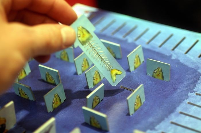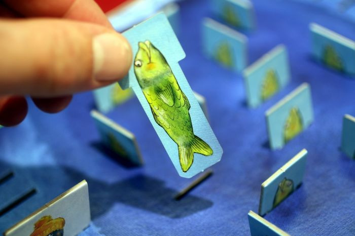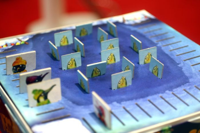 A Flossen Hoch! társasjátékban pingvinekkel vadászunk a játék dobozában kialakított tengerből kikukucskáló halacskákra. A kis pingvinek megpróbálják megjegyezni azt a helyet, ahol látták felbukkanni a nagy halat.... és amint lehet kapnak az alkalmon, hogy kihalásszák. A Flossen Hoch! játékban 16 látszólag egyforma hal dugja ki fejecskéjét a vízből, de csak a játék folyamán derül ki róluk, hogy mekkorák. Kinek sikerül vajon a leghosszabb halat kifogni?