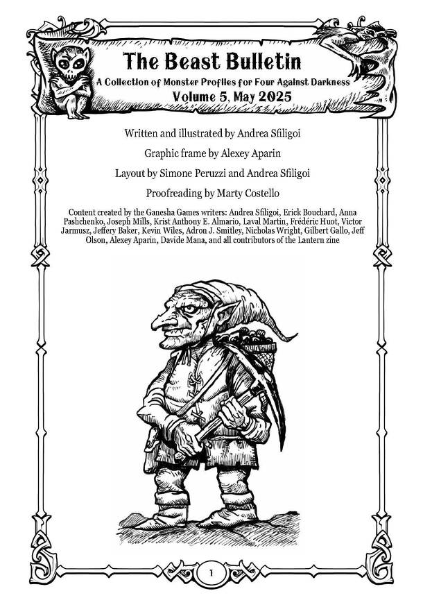 This issue of the Beast Bulletin has a mixture of new and classic monsters, including some from unpublished books. In this issue you will find: Abyssal Brownies, Kobold Ghouls...