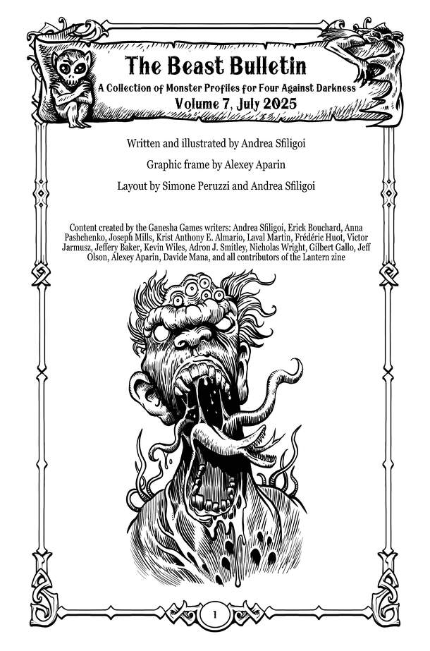 A The Beast Bulletin: A Collection of Monster Profiles – Volume 7 egy könnyen tanulható kiegészítő a Four Against Darkness társasjátékhoz, 1 játékos részére. A játékmenet erősen épít a ceruza-papír mechanizmusra.